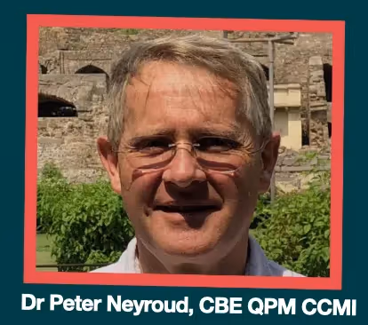 Dr Peter Neyroud, CBE QPM CCMI, Associate Professor in Evidence-based Policing, Jerry Lee Centre for Experimental Criminology, Institute of Criminology, University of Cambridge, Steering member of Campbell Collaboration (Crime and Justice), Advisor to HM Government on Reducing Violence, Honorary Professor, Teesside University, Visiting Professor, Huddersfield University, and Fellow of Wolfson College, Cambridge