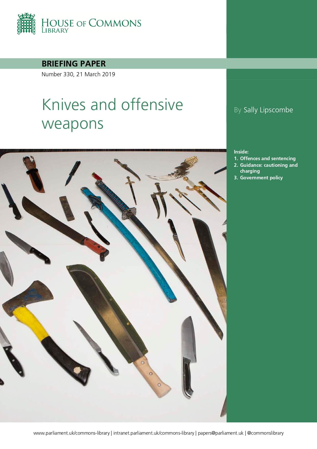 This briefing provides information on the two main categories of offence relating to knives and offensive weapons in England and Wales: offences relating to possession and offences relating to sale and supply. It also describes police guidance on cautioning and charging and the Government's policy on knife crime.