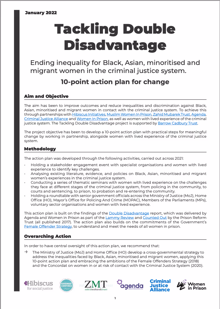 10-point action plan with practical steps for meaningful change by working in partnership, alongside women with lived experience of the criminal justice system.